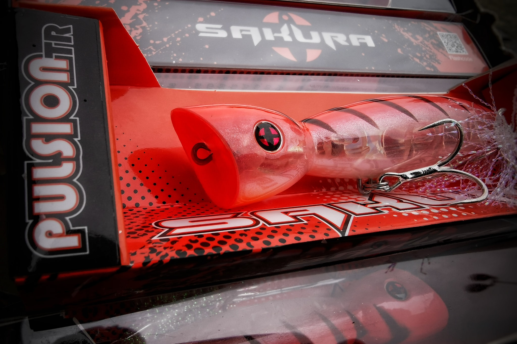 Sakura Pulsion TR je poper dužine 100 mm i težine 24 g posebno dizajniran za morski ribolov. Krase ga kvalitetne japanske trokuke i ringovi dostatni za borbu sa večinom morskih "zvjerki" koje ovaj poper svojim dubokim "plopom"i glasnom zvečkom nepogrešivo provocira, bilo da lovite preko dana lice ili neku drugu plavu ribu brzom i "paničnom" prezentacijom ili da lovite strijelke preko noći kada najbolje radi prezentacija sa dugim pauzama, nakon jednog ili dva "plopa" napravi se pauza od 10 -15 sekundi, i kod ponovnog kretanja obično i uslijedi udarac.