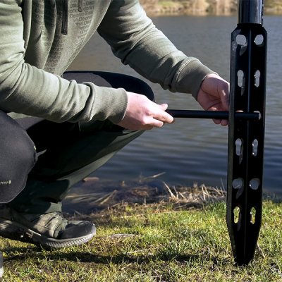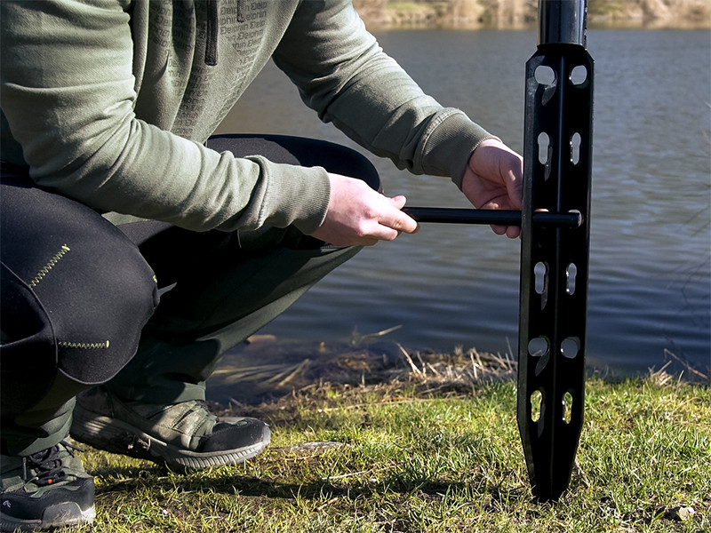 Kako biste osigurali štap za soma i spriječili njegovo klizanje kada riba zagrize, na vrhu se nalazi sigurnosni mehanizam. Držač štapa je zavaren za stalak i zato će štap ostati stabilan u svim okolnostima. Osim toga, stalak ima otvore za odvod viška vode.