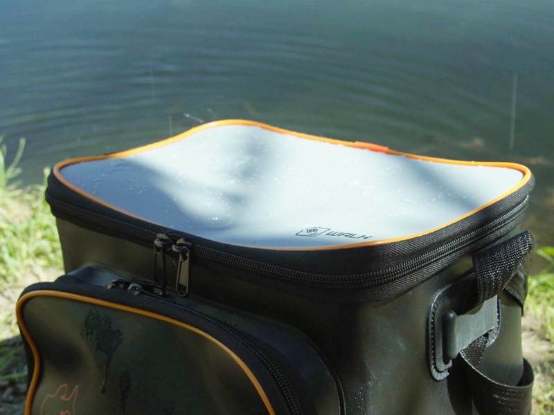 Unutrašnjost torbe pruža dovoljno prostora za sve neophodne kutije s varalicama i dodatnim priborom. Prednji džep s patentnim zatvaračem nudi dodatni prostor za sitni pribor, mamce ili dokumente, a zahvaljujući kvalitetnim šavovima i materijalu, torba ne upija mirise i lako se čisti, čak i nakon korištenja s aromatiziranim atraktantima ili boosterima.