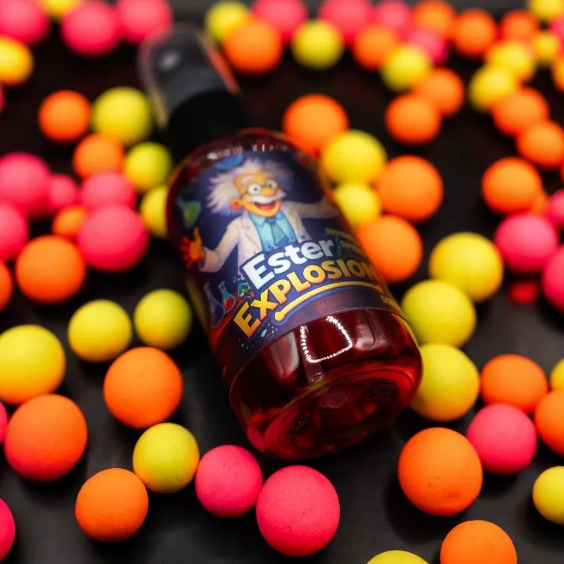 Ester Explosion rezultat je dugotrajnog eksperimentiranja s različitim esterima i pažljivo odabranim organskim kiselinama kako bi se stvorila ekstremno snažna reakcija u vodi koja odmah privlači pažnju šarana u blizini.