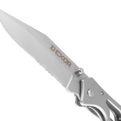 Oštrica je izrađena od kvalitetnog nehrđajućeg čelika i ima kombinirani rez – ravni i nazubljeni dio. Takva izvedba omogućuje lako rezanje struna, upredenica, najlona, užadi i drugih tvrdih materijala. Zahvaljujući urezu na oštrici, nož se može jednostavno otvoriti jednom rukom.
