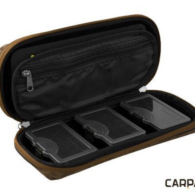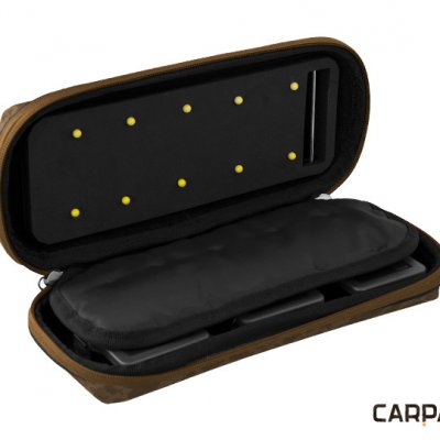 Luksuzno kućište za šarane, koje ispunjava i najzahtjevnija očekivanja. Vanjski pokrov je stvrdnut i ne postoji opasnost od oštećenja njegovog unutarnjeg sadržaja. Na njegov gornji dio ušiven je udoban stisak. Može se otvoriti savršeno izrađenim patentnim zatvaračem. Nakon otvaranja saznat ćete da sam se podijelio na tri dijela. Lijevi dio opremljen je pjenom (26x10x1cm). Ovaj je prostor dizajniran za spremanje vaših predvez. Pričvršćivanje predveza može se izvršiti pomoću 10 klinova s ​​okruglom glavom. Desni dio sadrži tri zasebne kutije za sitan pribor. Svaka kutija je velika 10x7x2,5 cm. Posljednji treći dio je srednja pregrada koja u sebi ima džep s patentnim zatvaračem. Tamo možete spremiti svoje škare ili drugi pribor potreban za izradu predveza. Ovaj vrhunski model nudi se po nenadmašnoj cijeni!