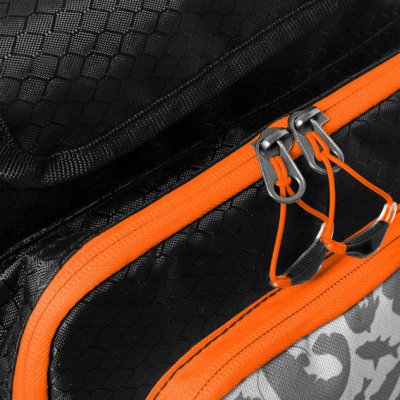 Crossbody je opremljen kvalitetnim narančastim patentnim zatvaračima. Izvlakači patentnih zatvarača opremljeni su plastičnom vrpcom sa širim narančastim remenom, što ih čini jednostavnim za otvaranje. Primijenjeni narančasti dodaci čine torbe vidljivijima čak i u mraku i tako se neće izgubiti. Torba je izrađena od lagane, ali izdržljive crne tkanine.