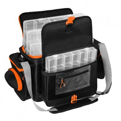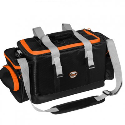 Torba dolazi s kvalitetnim narančastim patentnim zatvaračima. Izvlačivači patentnih zatvarača opremljeni su plastičnom vezicom koja je opremljena širim narančastim remenom. Prilično je praktičan i omogućuje vam lako otvaranje patentnih zatvarača. Primijenjena narančasta dodatna oprema čini torbu vidljivom, čak i u mraku, tako da se neće izgubiti. Torba je izrađena od lagane, ali postojane crne tkanine. Siva naramenica ili praktične ručke, obje dodaju maksimalnu udobnost tijekom nošenja torbe.