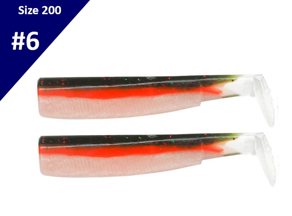 Rezervna silikonska tijela za Black Minnow veličine n°6 (200 mm). Ultra-meko Extra Soft tijelo i prepoznatljiv rep daju prirodno, vibracijsko plivanje koje odlično radi pri „sink & draw” vođenju, stepanju po dnu i pretrazi strukture. Kompatibilna su sa svim odgovarajućim Black Minnow jig glavama i PH2S sustavom skrivene (weedless) udice.